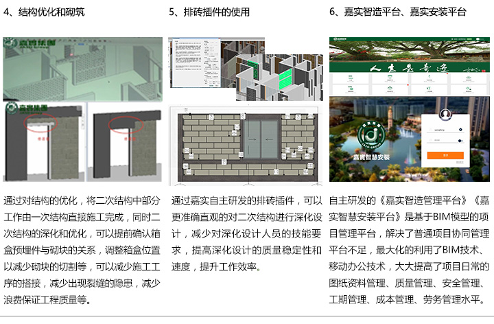 集团在苏州嘉苑和广场项目(酒店、公寓、办公综合体,地下两层地上十六层,总建筑面积5万M2,已完工);南京栖霞区丁家庄二期地块保障性住房A3地块项目(5栋18层住宅及相应地下车库,建筑面积9万M2,已完工);南京综合研发楼、研发服务楼及生产研发楼工程(酒店、餐饮、办公、休闲于一体的综合性园区,包括12栋单体和整体地下车库,总建筑面积10万M2,收尾阶段)。均全程采用了VDC/BIM技术,并取得了良好的经济效益和社会效益。
