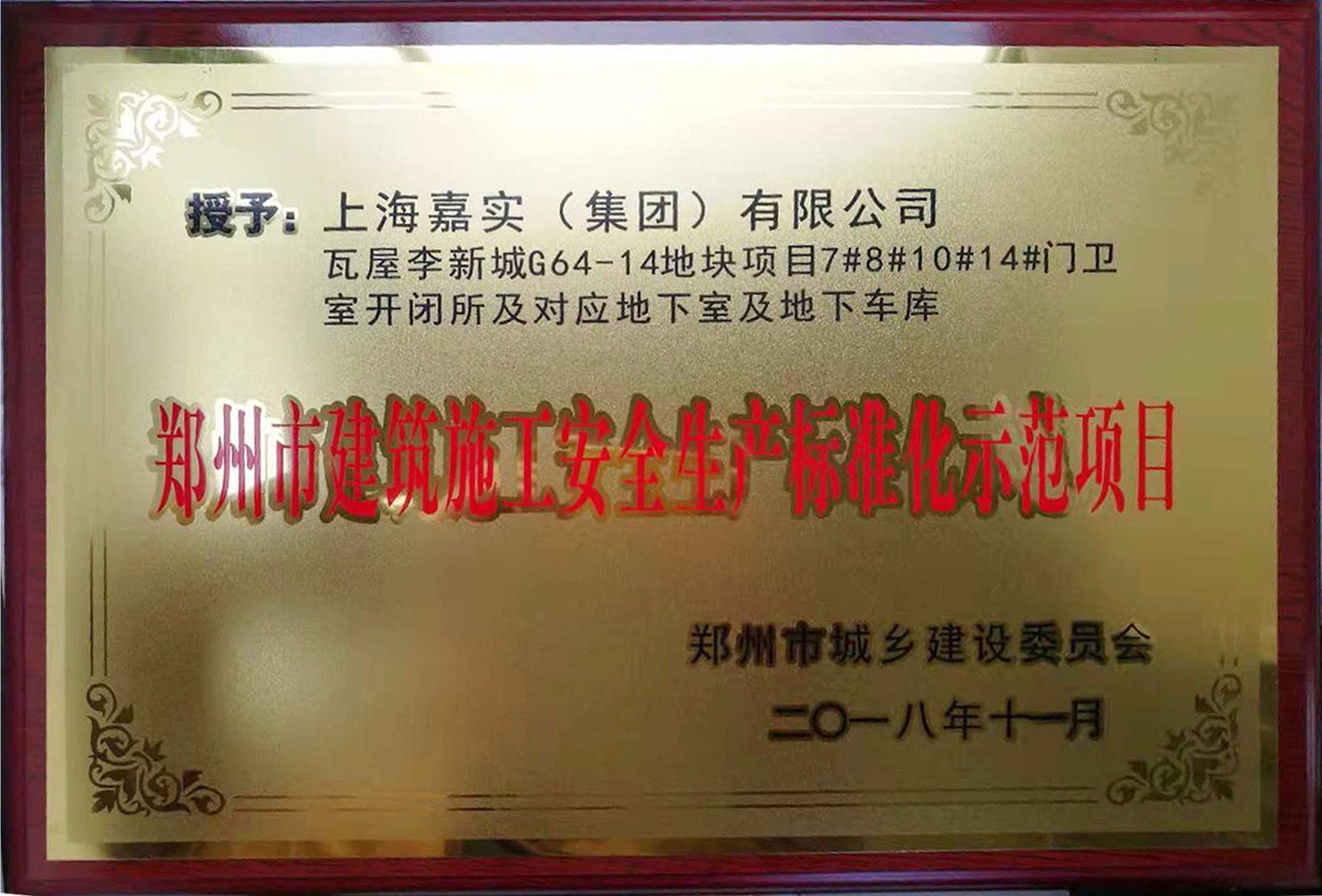 郑州市城乡建设委员会对嘉实总承包的瓦屋李新城项目给予的荣誉,不仅是对“嘉实产品”的认可,更是对以项目经理陈军为代表的“嘉实人”的肯定。